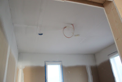 Eftersom vi inte hade alltför hög tilltro till att de faktiskt skulle få allt gjort i går, flyttade vi fram spackelurakkan med en vecka. Just in case. Men efter tre framskjutna startdatum verkar det alltså faktiskt nu som om stora delar av huset skall bli vitt med start om drygt en vecka.